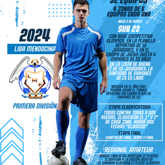 La Liga Mendocina de Fútbol presenta el nuevo formato de torneo masculino en Primera División para la temporada 2024 pedido y aprobado por amplia mayoría de los clubes afiliados (un solo voto negativo). Este formato estilo olímpico está compuesto por futbolistas sub 23 y solo se permiten 4 excepciones que superen esta edad. En la lista de buena fe no hay límite de edad.